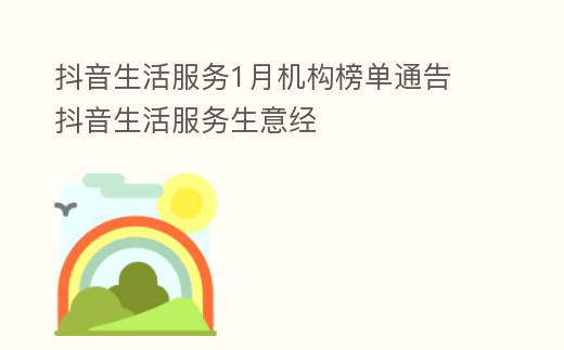 據(jù)悉,抖音生活服務(wù)機(jī)構(gòu)平臺(tái)將以月為周期推出每月機(jī)構(gòu)排行榜,下期機(jī)構(gòu)月榜活動(dòng)已于2月1日正式開(kāi)啟,2月1日~2月28日間已入駐抖音生活服務(wù)機(jī)構(gòu)平臺(tái)且繳納保證金的合作伙伴均可報(bào)名參與。